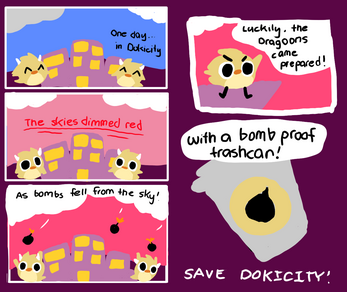 Bombs are falling from the sky! Help the dragoons save Doki City from exploding!
